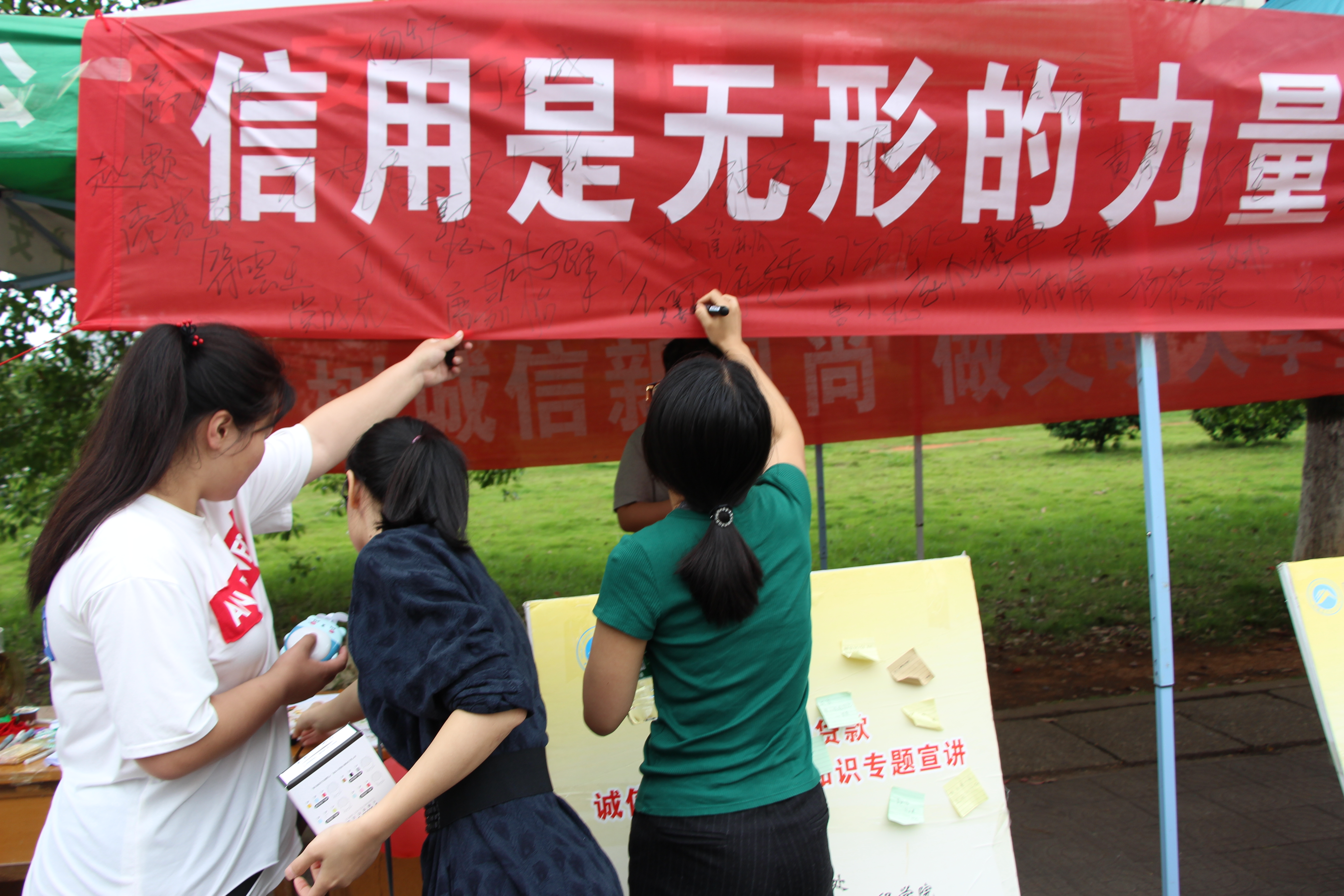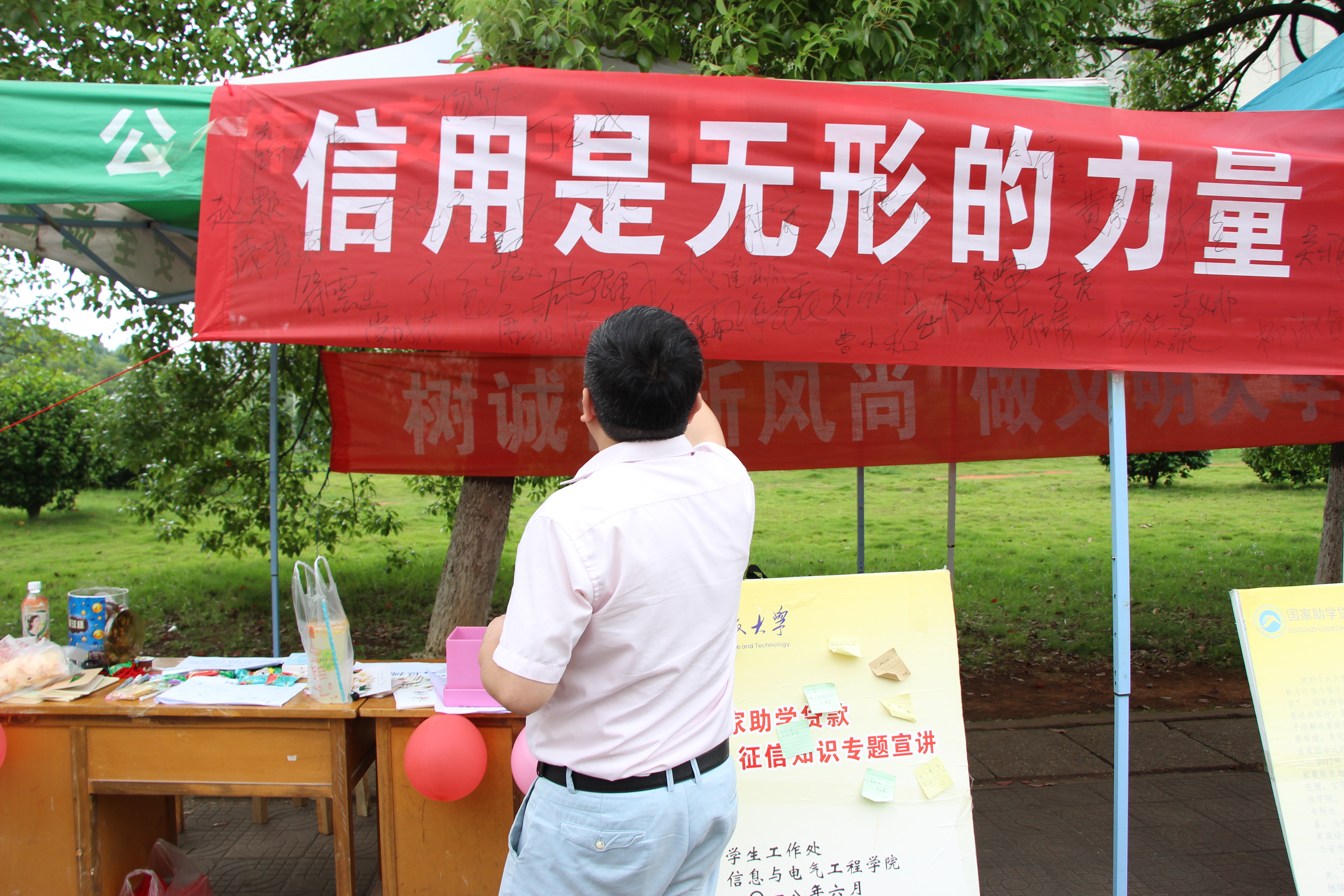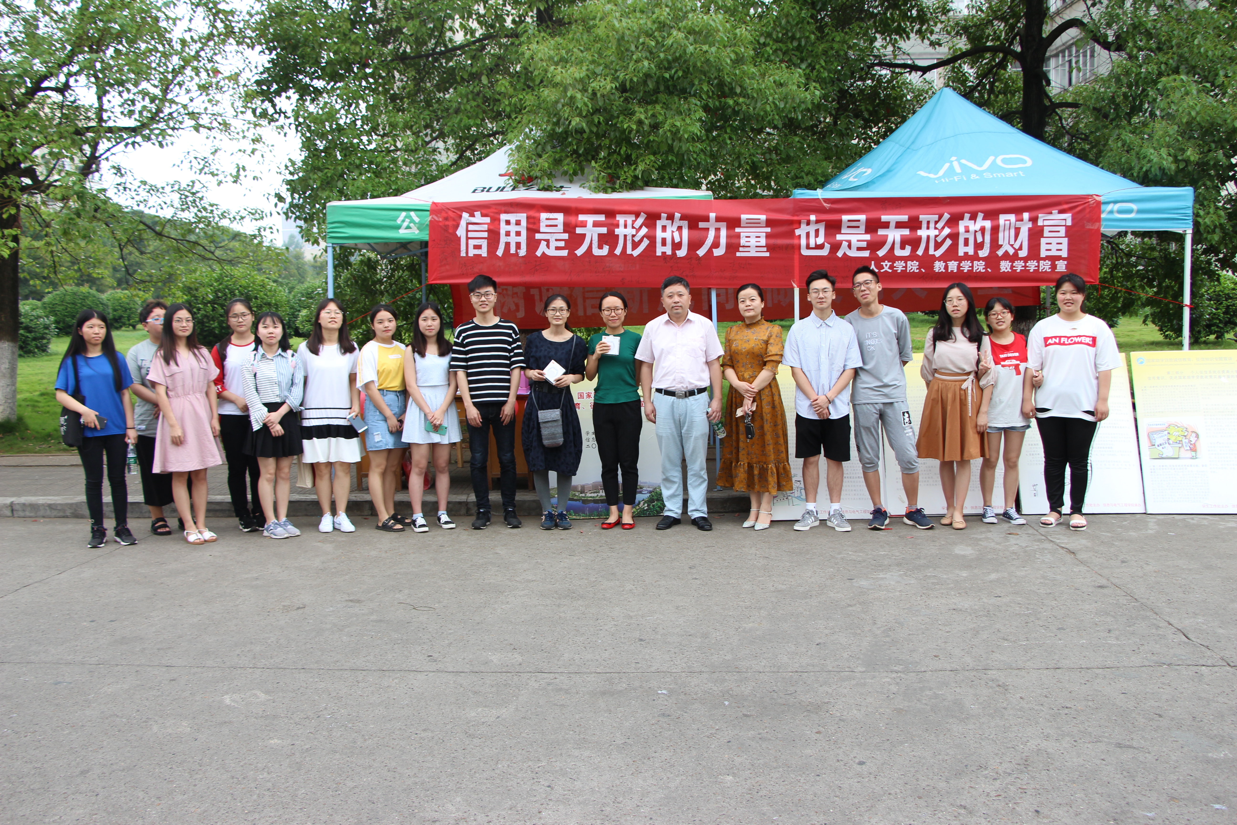 为进一步提高bv伟德国际体育官方网站学生的诚信素质,切实提升诚信教育实效,6月14日,bv伟德国际体育官方网站与教育学院、数学与计算科学学院七区宿舍共同举办2018年诚信展板活动,院党委副书记邓辉、学工办赵华老师、赵晗冰老师、王嘉敏老师参加此次活动。活动由勤工部组织。